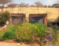 Only two years after Erhard was taken to South Africa, during a large thunder storm it rained so much that the earthen dam could not hold the torrent and the water went over the top and cut a deep gorge into the wall. At that time Monteith had only two sources of water, the windmill at Haruparra and the reservoir in front of the house. Fortunately, the neighbor, Mr. Rogers, offered to help. He and his ranch hands worked for more than six weeks, using donkeys, oxen, and earth scoops, sometimes in pouring rain, to repair the dam wall.